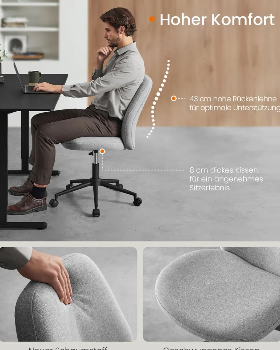 SKU: N/A Categories: Arbeitshocker, Bürostühle, Chefsessel, Homeoffice Tags: Pastellrosa, SONGMICS, Taubengrau Brand: SONGMICS
