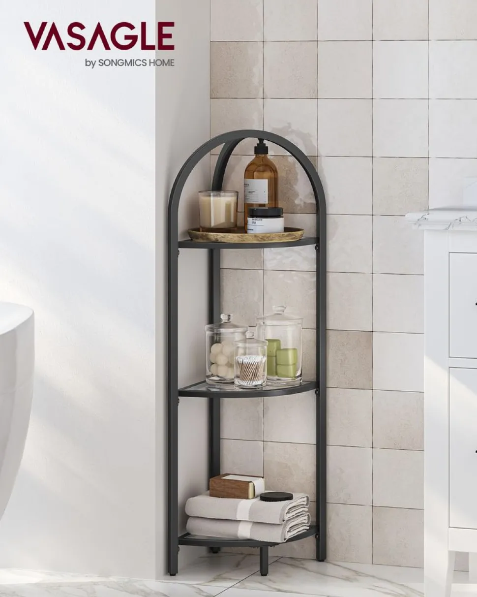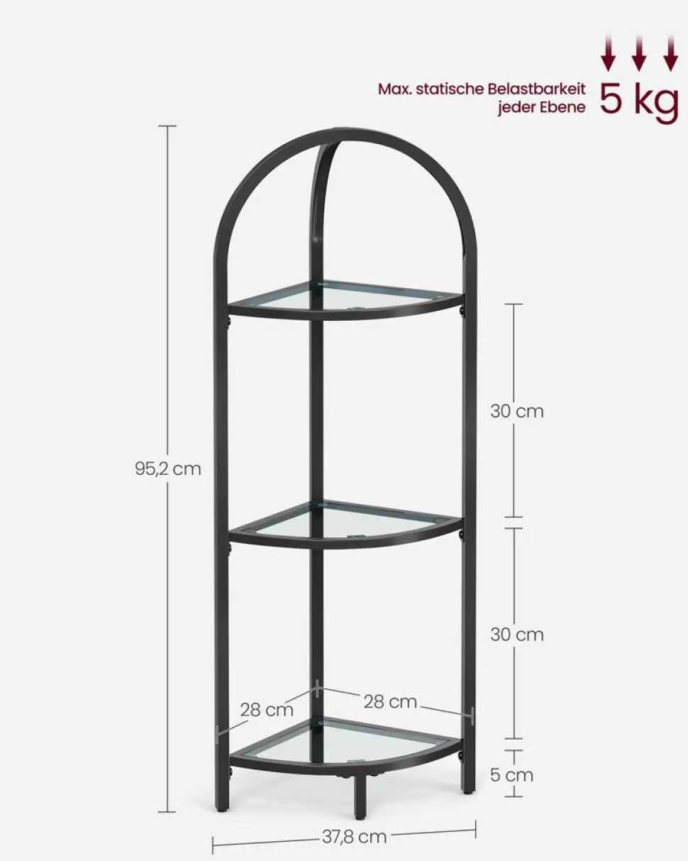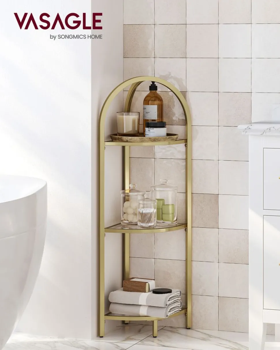 Badezimmerregale|Bücherregale<SONGMICS Eckregal 3 Ebenen mit Ablagen aus Hartglas