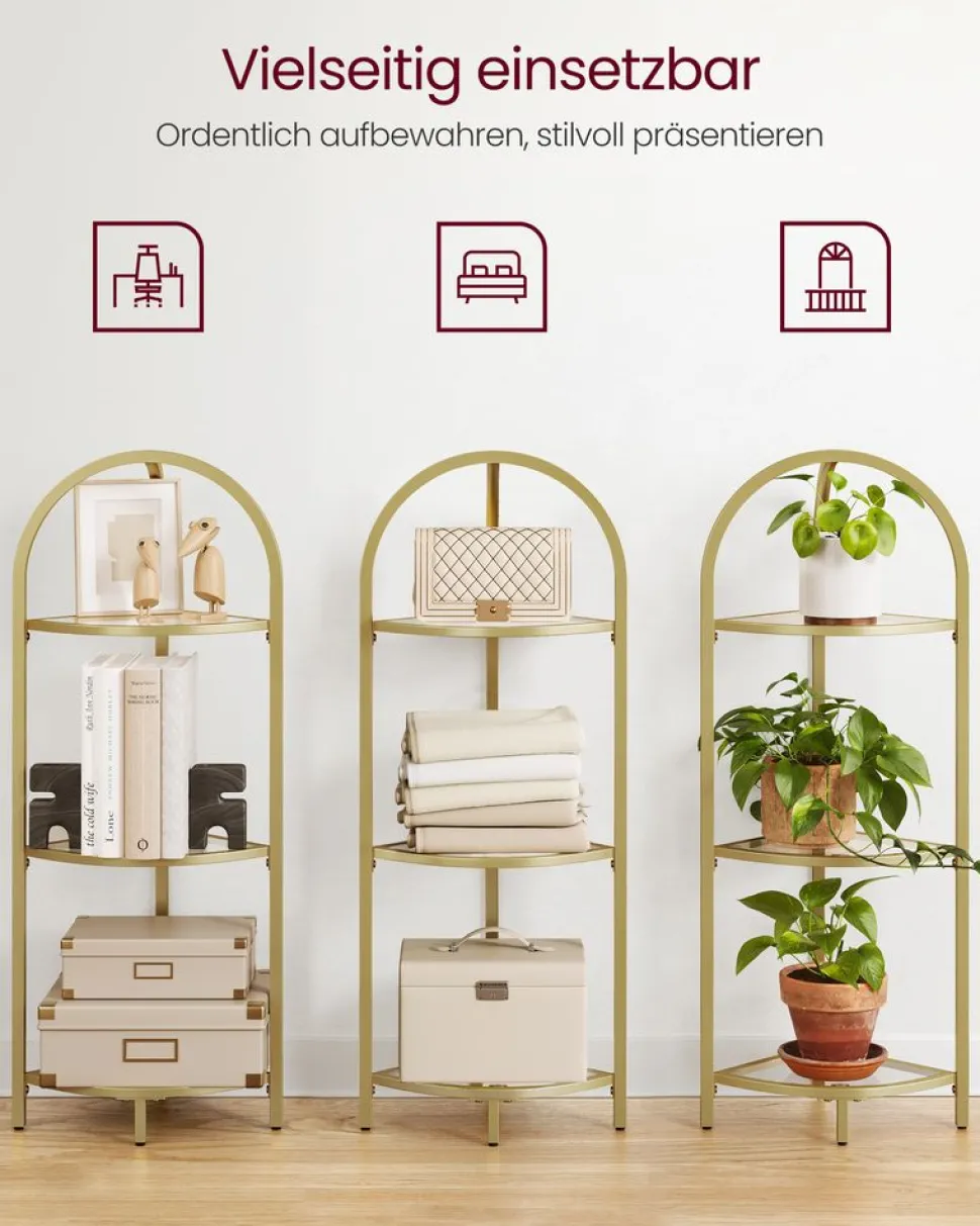 [Charmantes Aussehen] Glasplatten, modernes Design – mit diesem eleganten Eckregal können Sie Ihre Lieblingsstücke s…