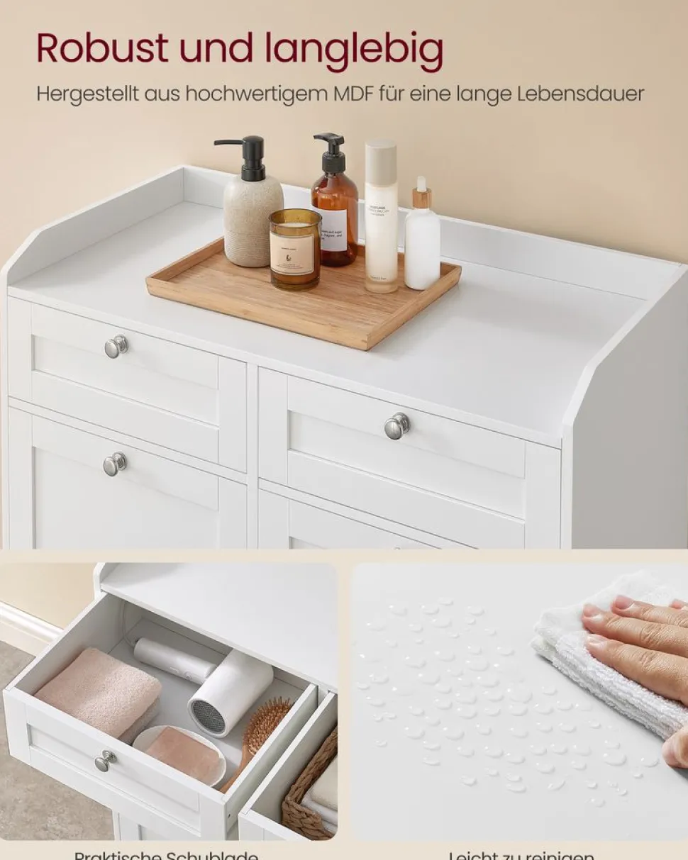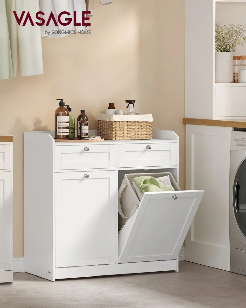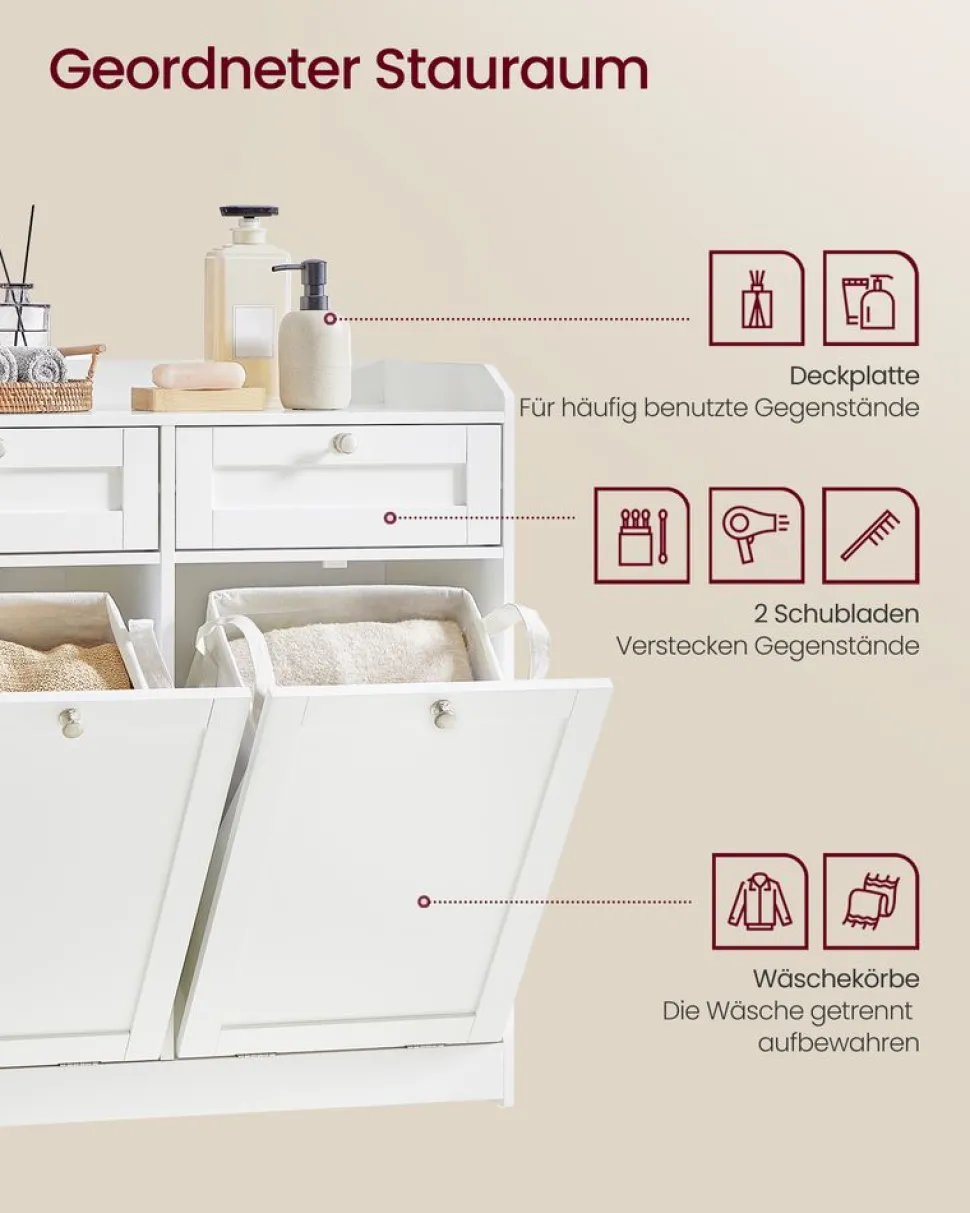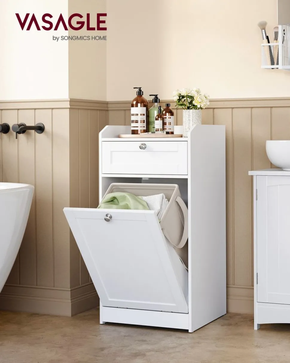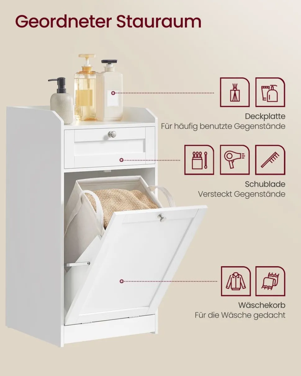 【BADSCHRANK UND WÄSCHEKORB IN EINEM】Eine Deckplatte und eine Schublade bieten einfachen Zugriff auf Ihre Gegenstän…