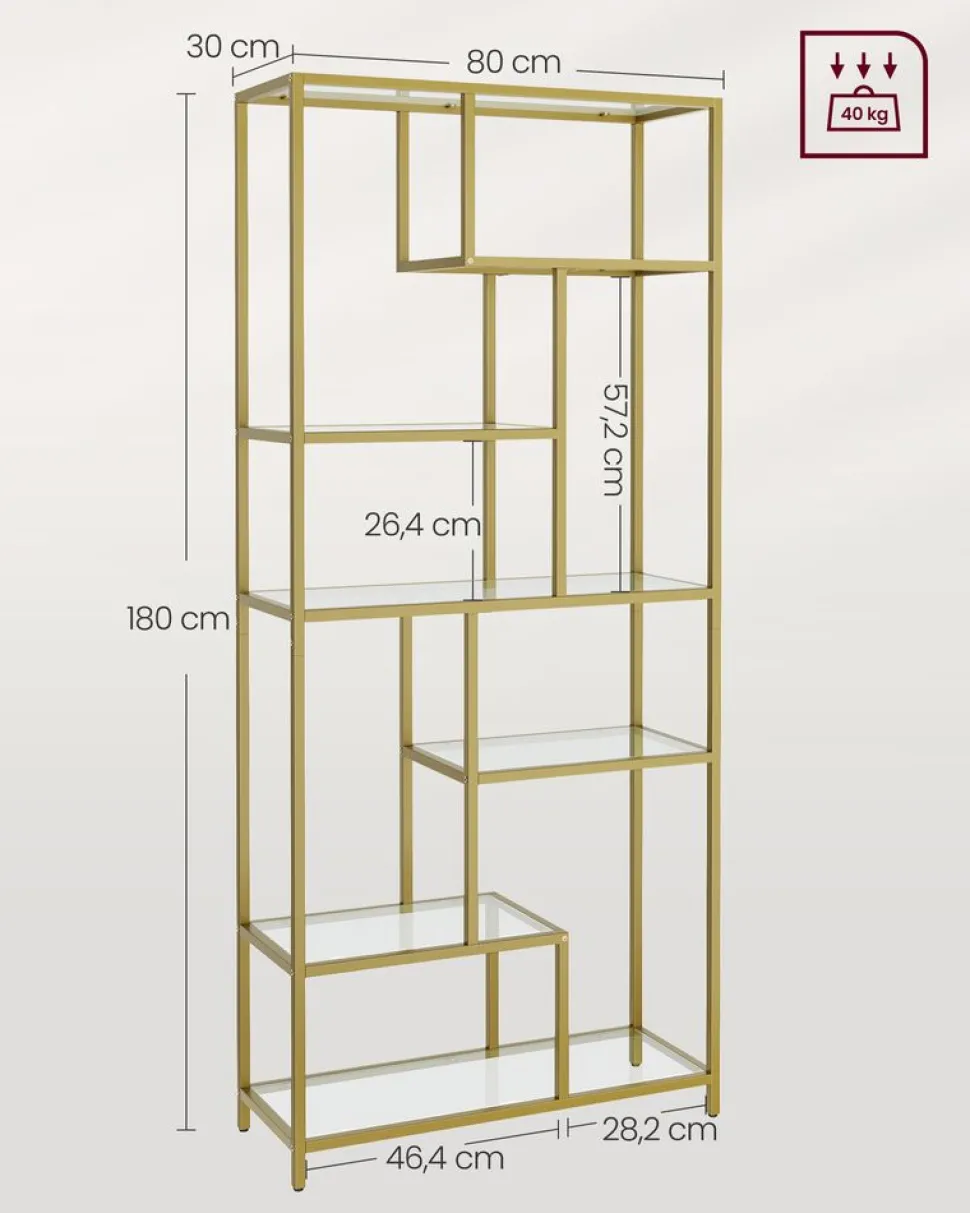 Bücherregale|Bücherregale<SONGMICS Bücherregal mit 6 Ablagen gold-transparent