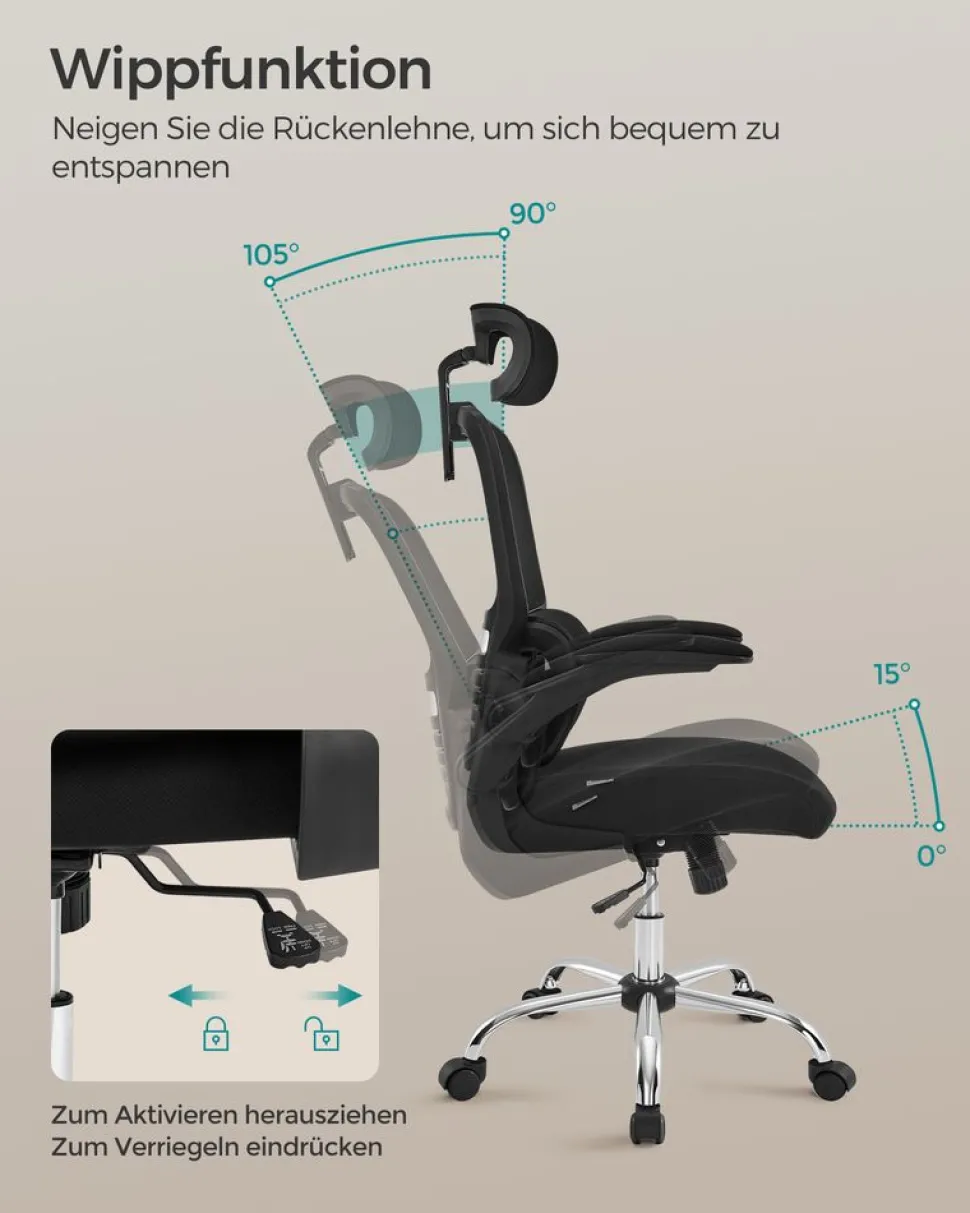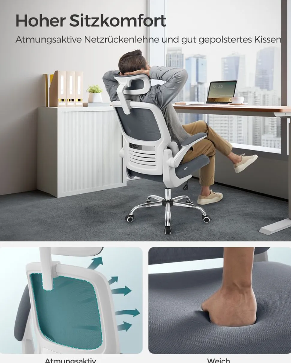 SKU: N/A Categories: Bürostühle, Drehstühle Mit Netzbespannung, Homeoffice Tags: SONGMICS, Taubengrau, Tintenschwarz Brand: SONGMICS