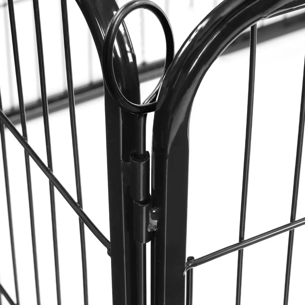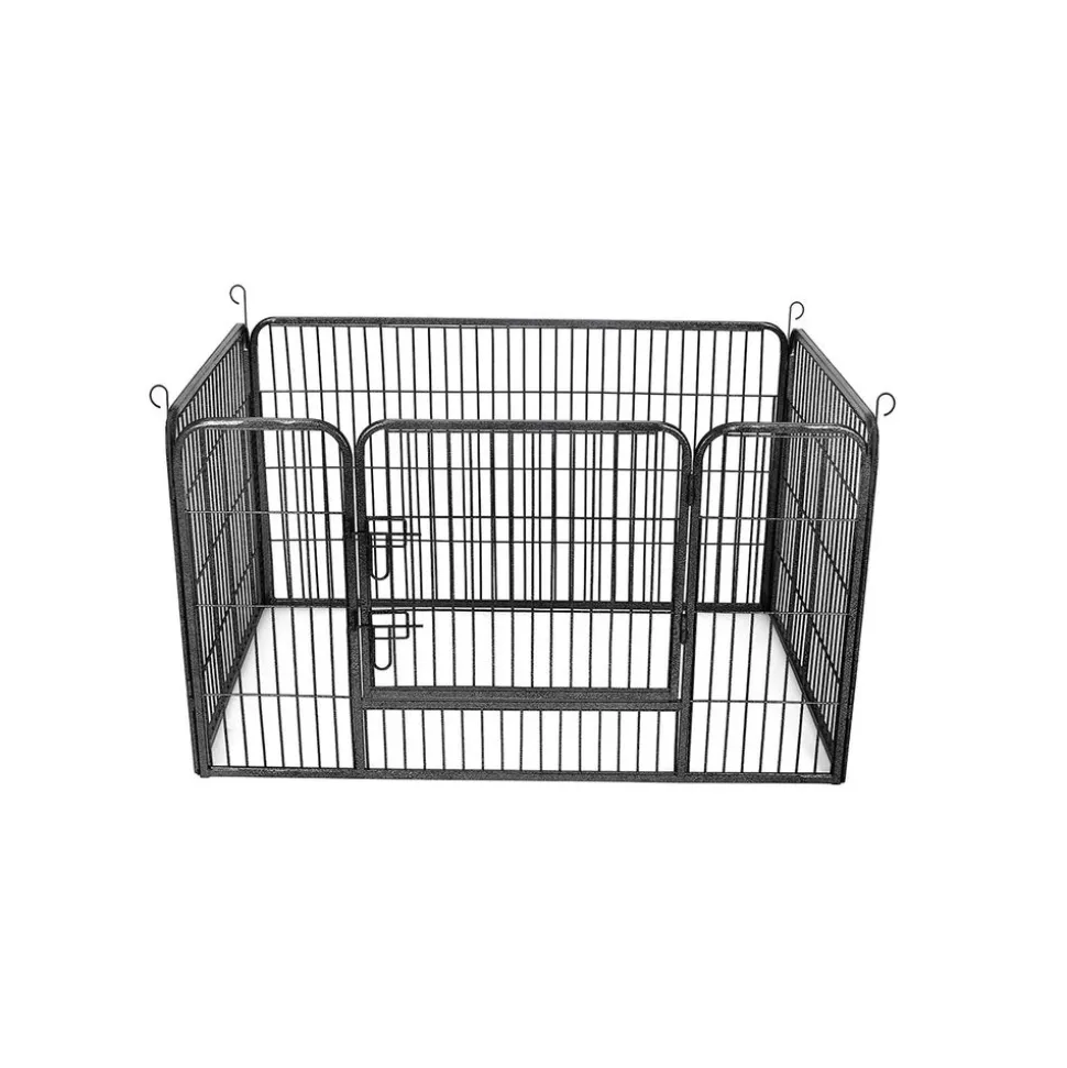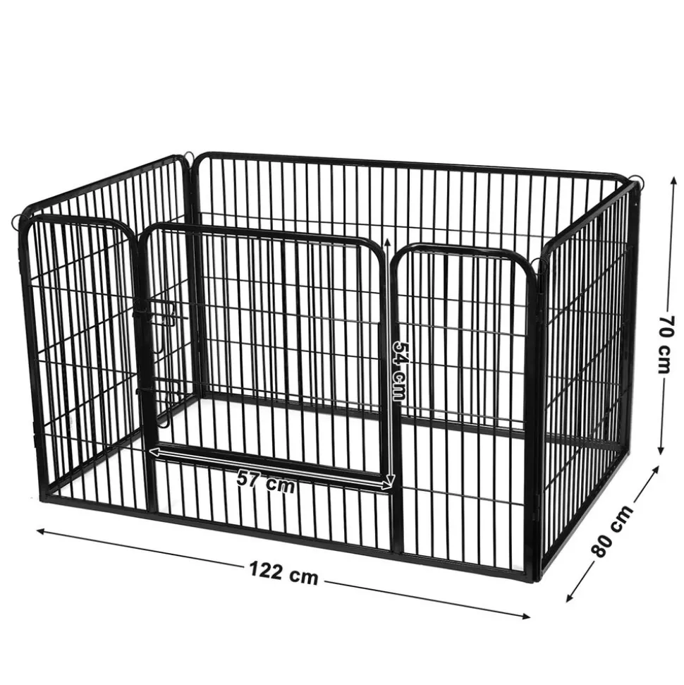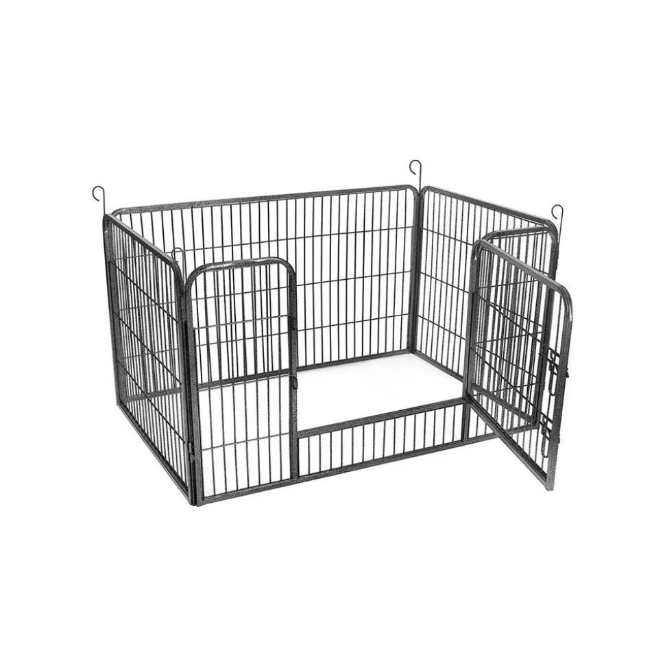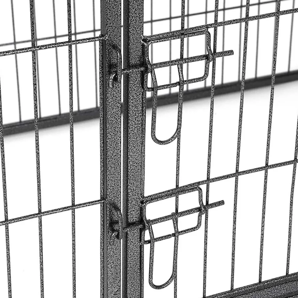 Dank des gut durchdachten Designs lässt sich das Welpengitter schnell und ganz ohne Werkzeug auf- sowie abbauen. Das Freigehege besteht aus 4 Zaunelementen. Eines dieser Elemente weist eine Tür auf, welche groß genug ist, um einen schnellen und leichten Zugriff auf Ihre Tiere zu ermöglichen. 2 Riegelbolzen sorgen für zusätzliche Sicherheit. Nur über eine Sache verfügt dieser offene Käfig nicht: scharfe Ecken und Kanten!