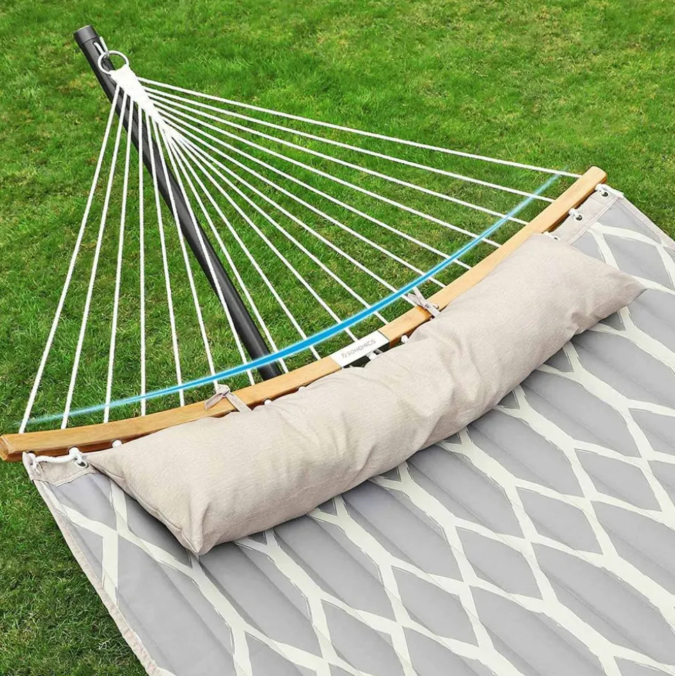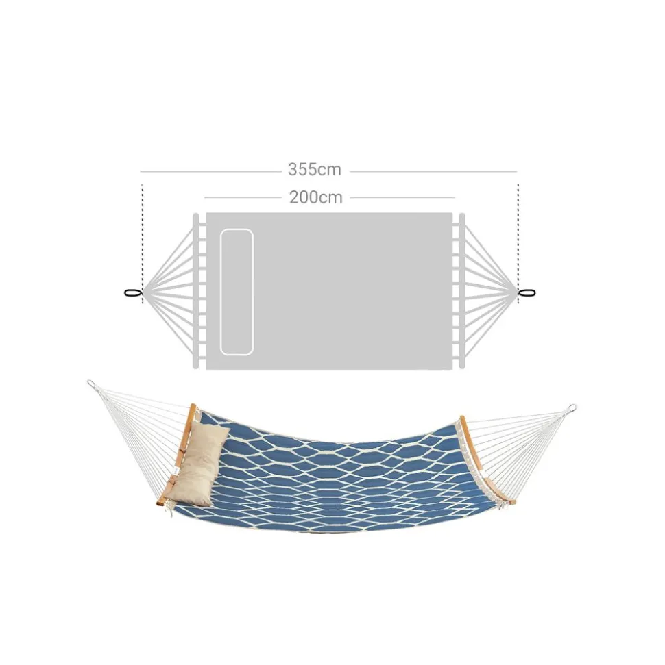Ein fauler Tag: Legen Sie sich in diese Hängematte (200 x 140 cm), legen Sie Ihren Kopf auf das Kissen, strecken Sie Ih…