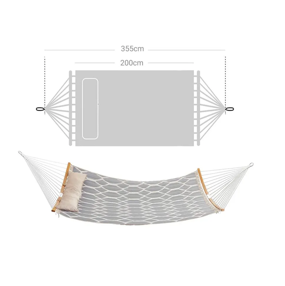 Passt in den Garten: Befestigen Sie diese Hängematte in Ihrem Garten oder Hinterhof und machen Sie sie zu einem Teil Ihres täglichen Lebens. An einem gemütlichen Nachmittag können Sie hier ein Buch lesen oder ein Nickerchen machen, oder sich mit Ihren Kindern hineinlegen und nachts die Sterne betrachten.
