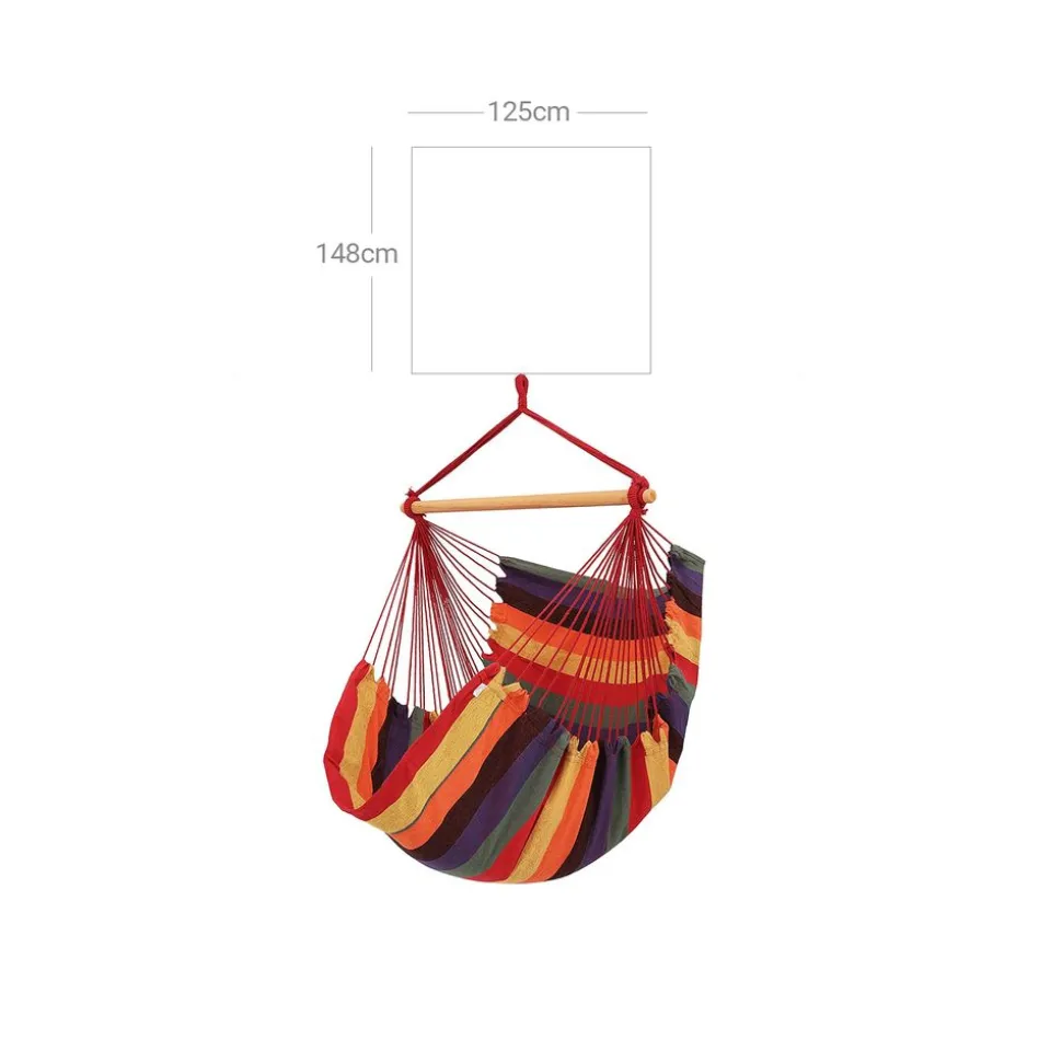 Frische, fröhliche Farben und eine riesige Stofffläche machen den SONGMICS Hängesessel zu einer Ruhe-Oase für Sie. Bei schönem Wetter gibt es nichts Schöneres, als das Ausruhen in einem Hängesessel. Während des entspannenden und beruhigenden Schaukelns bekommen Sie körperliches und seelisches Wohlbefinden. Das geringe Gewicht und die kompakten Maße erfahren den zum idealen Begleiter.