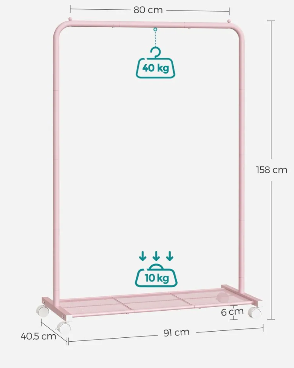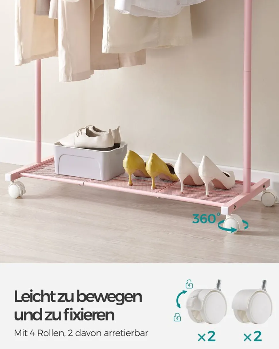 Be the first to review “Kleiderständer<SONGMICS Kleiderständer 91 cm breit auf Rollen pastellrosa” Antworten abbrechen