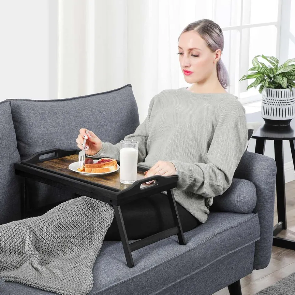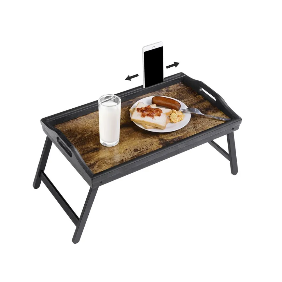 Mobile Laptoptische<SONGMICS Betttablett mit klappbaren Beinen aus Bambus vintagebraun-schwarz