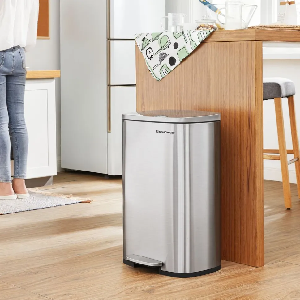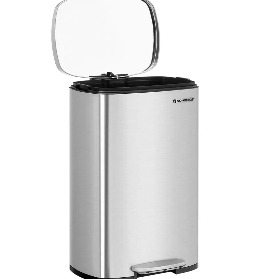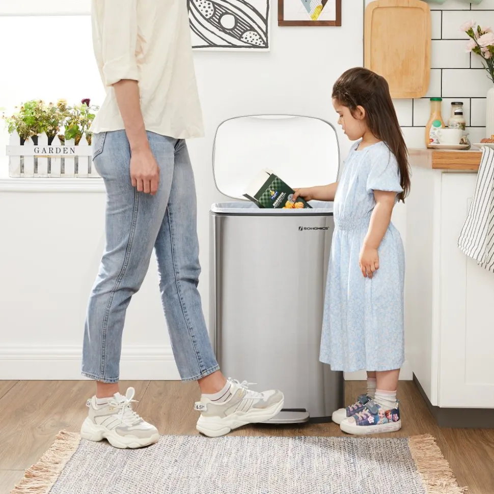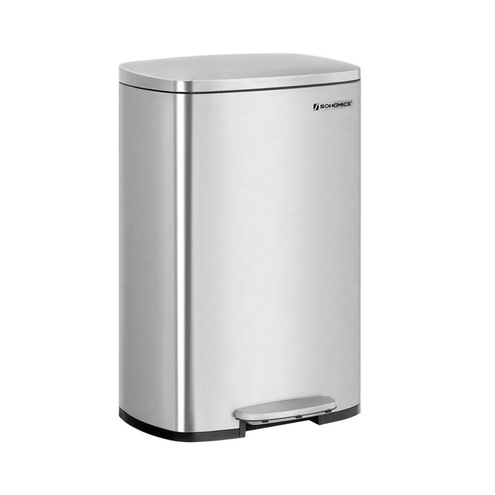 Mülleimer|Mülleimer<SONGMICS Treteimer aus Stahl mit Pedal Silbern