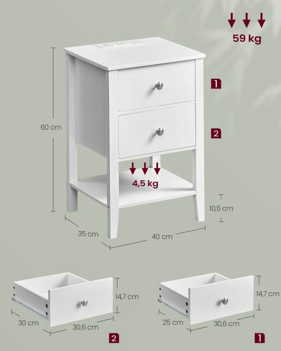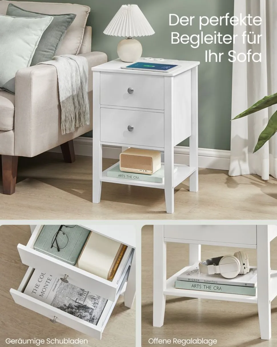 Be the first to review “Nachttische<SONGMICS Nachttisch mit Ladefunktion und 2 Schubladen wolkenweiß” Antworten abbrechen