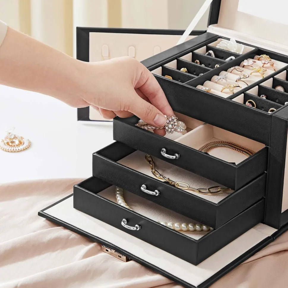 Schmuckschatullen<SONGMICS Schmuckkasten mit Schubladen Schwarz
