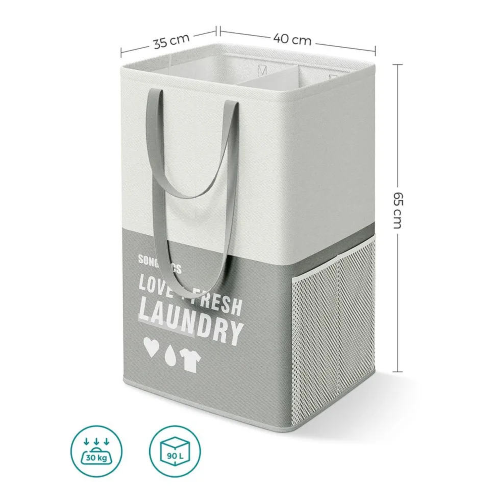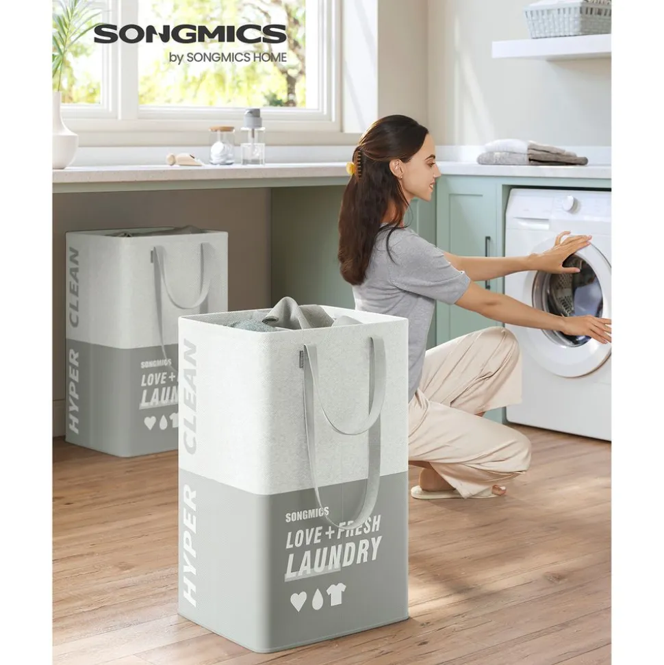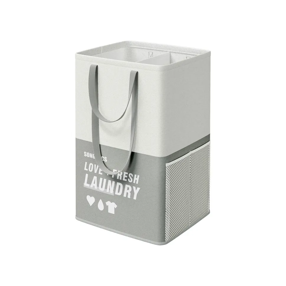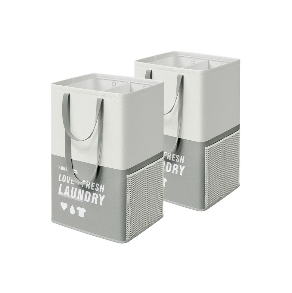 Wäschekörbe|Wäschekörbe<SONGMICS Wäschekorb mit 2 Fächern hellgrau