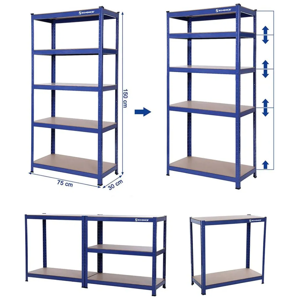 Werkzeugregale<SONGMICS 2er Set Schwerlast-Regal 150 cm hoch blau