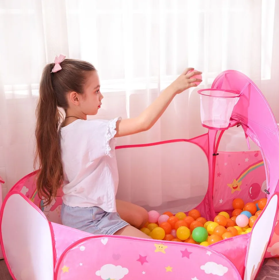 eine Abenteuerburg, die die Kinder liebten, weil sie dort spielen konnten und es nie langweilig wurde. Einzigartige Form, auffällige Farbe und lustige Muster – All dies ließ der Fantasie der Kinder freien Lauf. Zudem war dieses Spielzelt mit einem Tunnel und Basketballkorb ausgestattet, die die motorischen Fähigkeiten der Kinder stärken konnten.Zauberei